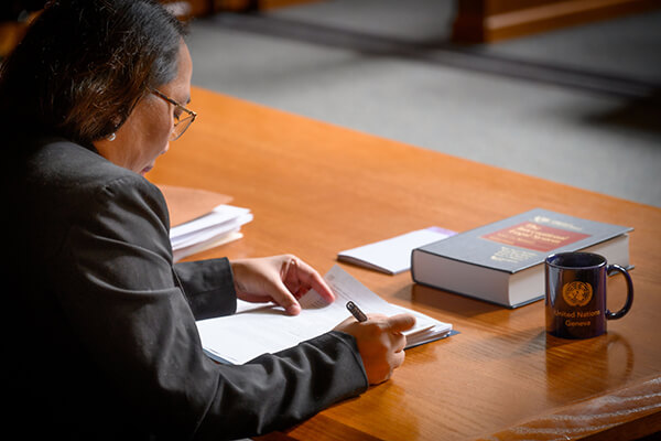 There’s Judge Ann Claire Williams, who was a 1974 graduate of Notre Dame Law School, who was the first African American woman to graduate from Notre Dame Law School. She went on to become a district attorney in Chicago. Later, she was elevated to the US Court of Appeals for the Seventh Circuit. She served honorably there until her retirement. And when she was retired, she was not done being a Notre Dame lawyer. She decided she was going to dedicate her life to improving outcomes for women all over Africa. So she traveled to Africa to train lawyers to deal with domestic violence issues and issues regarding children—girls’ education—and has been very influential all across Africa in establishing courts and in training judges to help women’s issues. Those are just some of the examples of what we mean by a Notre Dame lawyer.